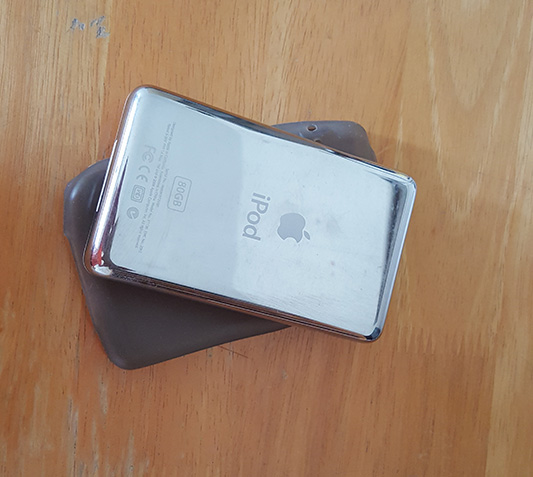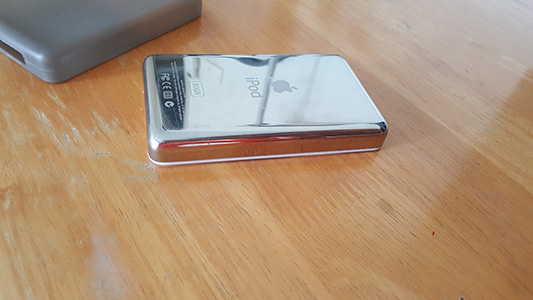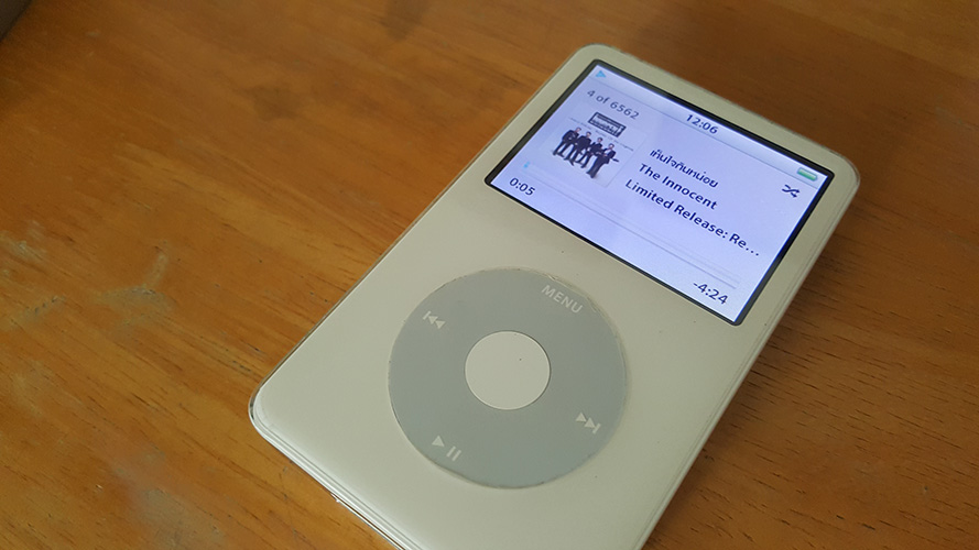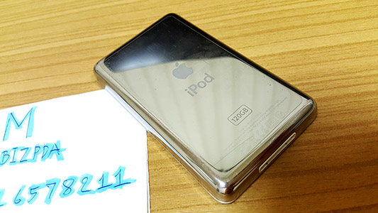 1.อุปกรณ์ : iPod classic 120GB สีบรอน์เทา ติดฟิล์มกันรอยหน้าจอ+ด้านหลัง และปุ่มวงกลมแล้ว