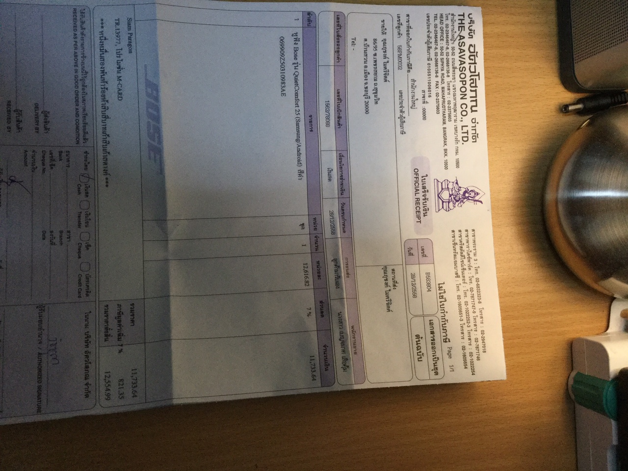 หูฟัง Bose QC25 ซื้อมาวันที่ 28/12/2558 จากศูนย์ bose siam paragon
