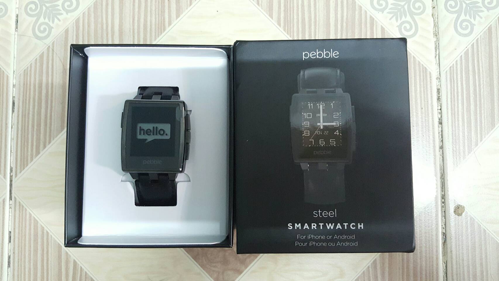 (เป็นเครื่องใหม่ที่ทางสิงคโปร์ ส่งมาให้แทนเครื่องเก่า(จอมีปัญหา) แต่ระหว่างรอของทนไม่ไหวเลยจัด pebble time steel มาสนองกิเลสแล้ว จึงปล่อยตัวpebble steel หนังแท้สีดำ ไว้ให้ผู้อยากลองหาsmart watch แหล่มๆ แบตอยู่นานไปลองของ