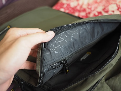 ช่องใส่ของเยอะมากๆๆ แถมด้วยความเท่จากตรา National geographic และลวดลายแผนที่หมู่ดาวเก๋ๆ ด้านใน