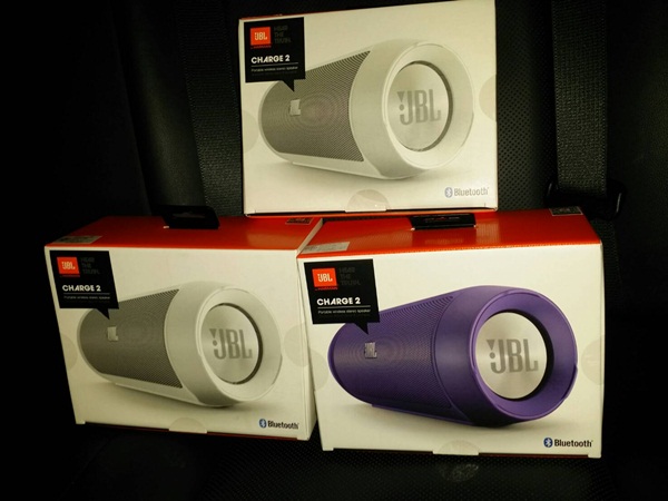 ขาย JBl Charge 2 ราคา4300 มีสีขาว 1 เครื่อง สีม่วง1 เครื่อง