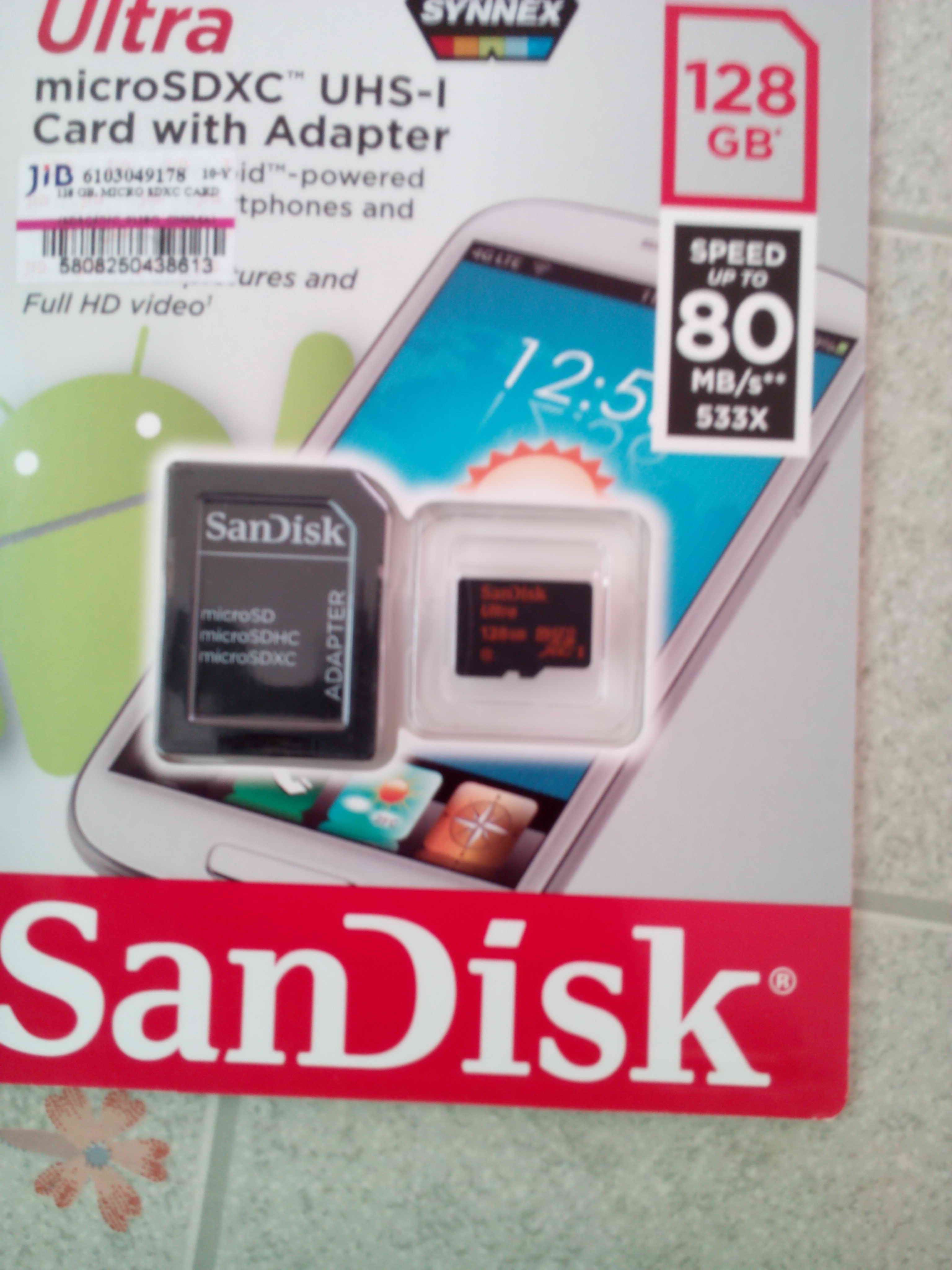 3.micro sd 128Gb Sandisk 1400 บาท สภาพใหม่ class 10 80mb/s เพลง flac เต็มความจุ ซื้อ14-9-2558