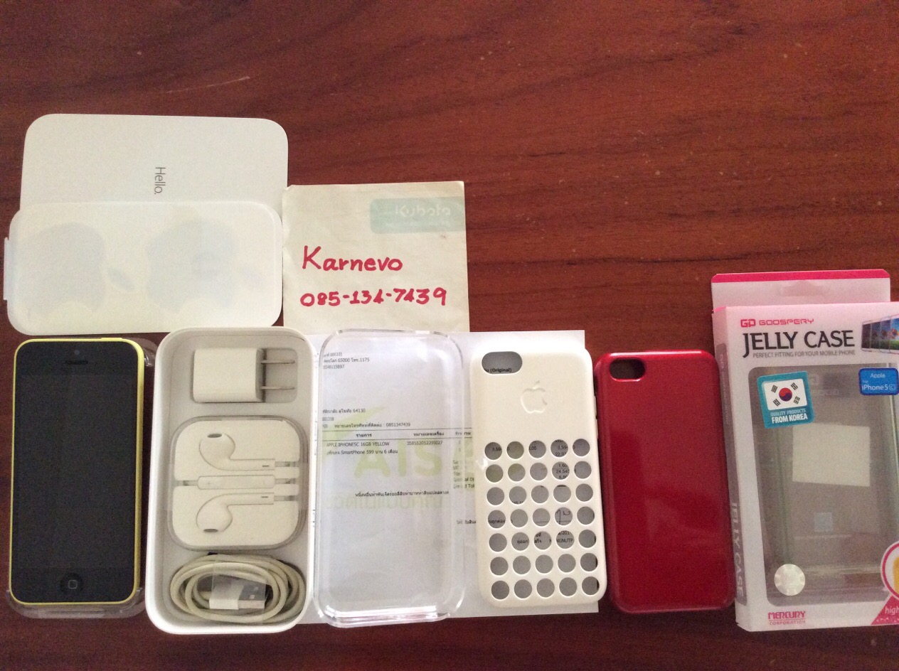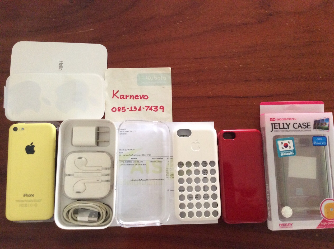 ขาย iPhone 5C สีเหลือง 16GB สภาพ98% อุปกรณ์แท้ครบกล่อง เคส3ตัว 5,500บาท