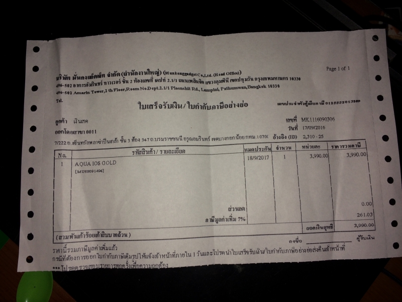 รายกายแรก Aqua ประกันร้านมั่นคง ซื้อมาวันที่ 17/09/2016 อุปกรณ์ใบเสร็จครบ ตัว Aqua ไม่มีลอย ปกติทุกอย่าง สีทอง หัวเป็น Lightning ต่อกับ Ios