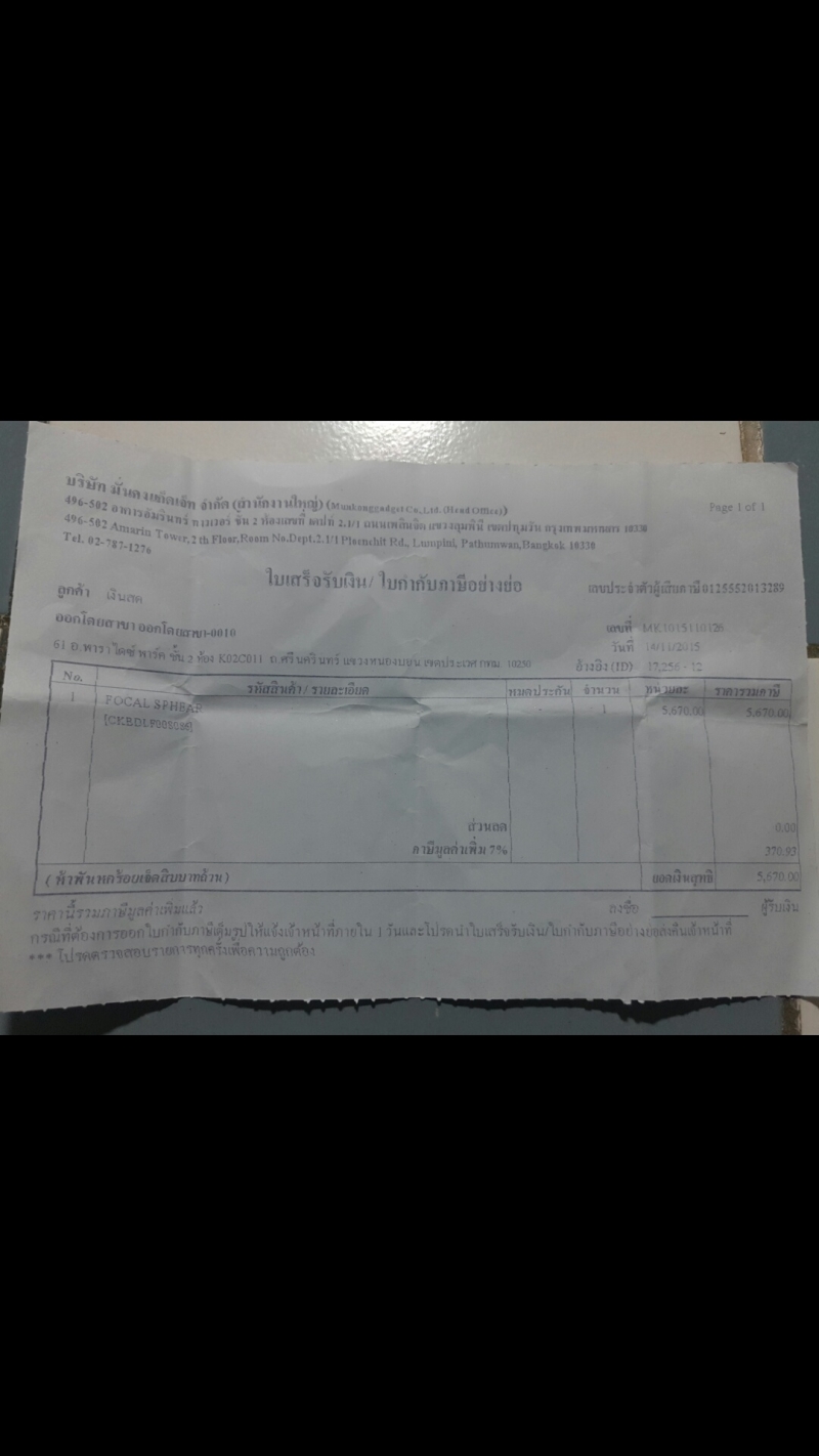 ขาย focal sphear สภาพดี อุปกรณ์ครบทุกอย่าง ประกันถึง 14/11/2016 มีใบเสร็จครับ