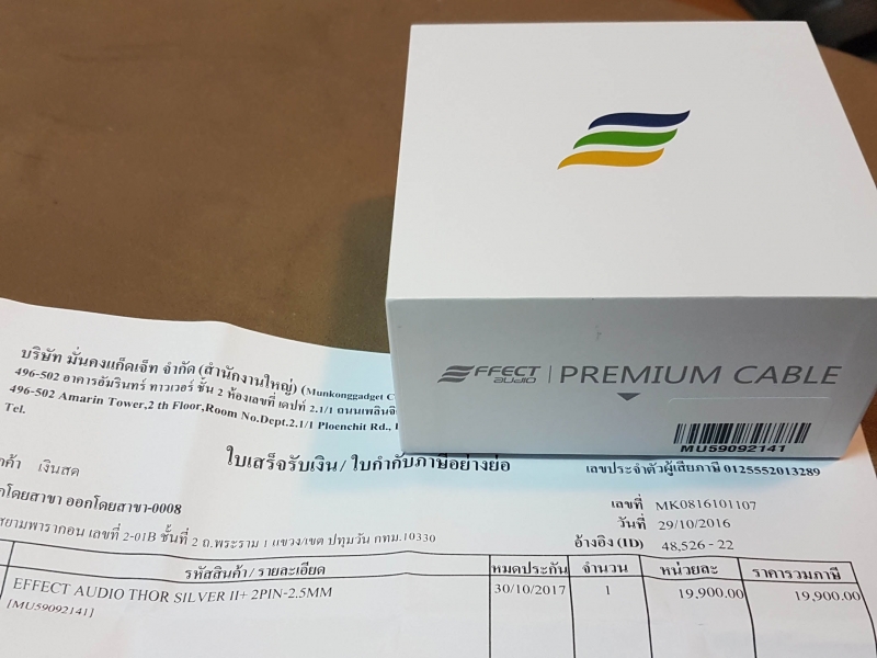 Effect Audio Thor silver 2+ (ขอย้ำว่า plus ครับ) เส้นโตๆ ขั้ว 2 pin หัว balance 2.5 สภาพใหม่มากที่สุด เพิ่งถอยมาจากร้านมั่นคง 29 พ.ย. 2559 นับอายุไม่ถึงสองสัปดาห์ มาครบกล่องพร้อมใบเสร็จ และการรับประกันอีกเกือบ 1 ปี