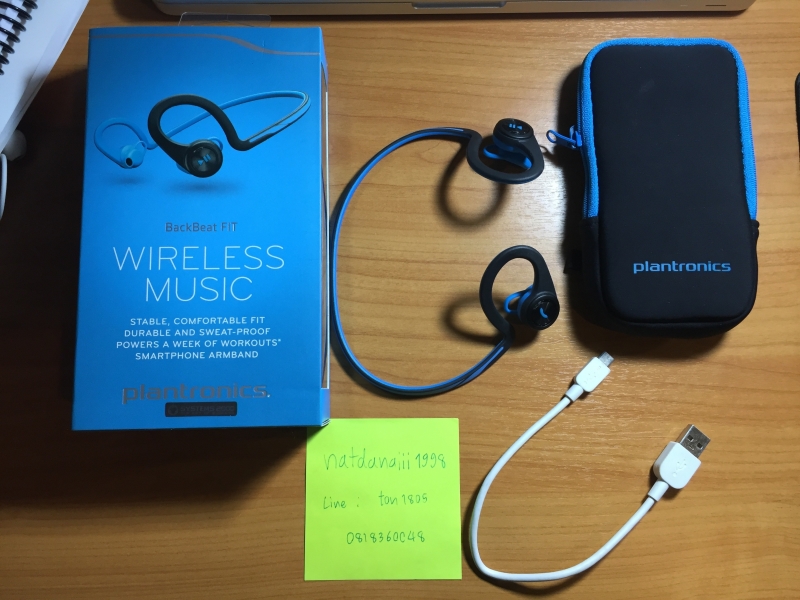 ขายหูฟังบลูทูธออกกำลังกาย plantronic backbeat fit ของแท้สภาพใหม่ใช้งานน้อยเคยใส่วิ่งและฟิตเนสไม่ค่อยได้ใช้ เครื่องศูนย์ไทยซื้อจาก banana it เดือนเมษา 2016 ประกัน 1 ปี