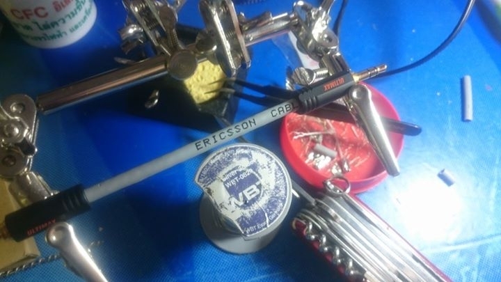 ส่วนการประกอบเข้าหัวนั้นใช้ตะกั่ว WBT เพื่อเน้นย่ายกลางแหลมและตะกั่วที่เป็นดีบุกเพื่อดึงเสียงย่านต่ำและใช้ทองคำเปลวนำมาเผาด้วยหัวพ่นที่อุณหภูมิ140 องศาเซลเซียสถึงจะละลาย ใส่ถุงมือในการเข้าหัวเพื่อป้องกันคราบไขมันจากมือซึ่งเป็นสาเหตุทำให้เกิดออกซิเดชันหรือสนิมเขียวนั่นเองครับ..และใช้น้ำยาไล่ความชื้นหลังจากเข้าสายเสร็จ..