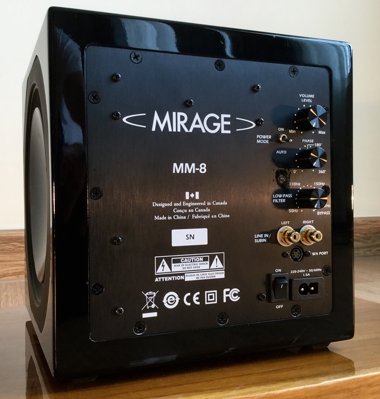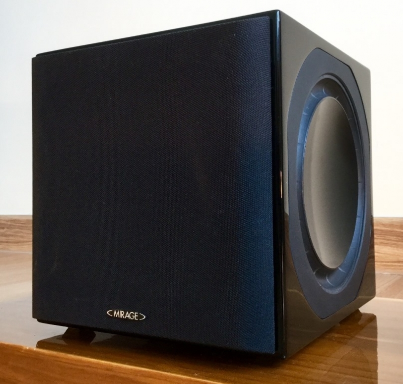 Mirage รุ่น MM-8 เป็น Subwoofer แบรนด์ดังจาก Canada ตู้ทรงสี่เหลี่ยมลูกบาศก์ ขนาด 9 นิ้ว เล็กกระทัดรัด วัสดุเป็นไฮกรอสสีดำเงา สวยหรูหรามาก