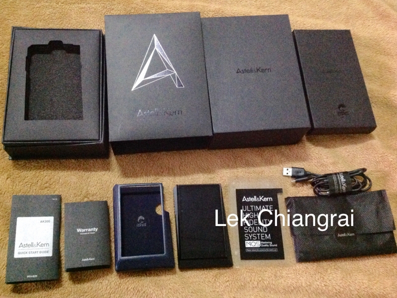 อุปกรณ์ครบกล่อง ตัวเครื่องเล่น AK 300 เคสหนัง คู่มือ สายชาร์จ USB ฟิลม์กันรอยที่ยังไม่ได้ใช้ หน้า หลัง 1 ชุด