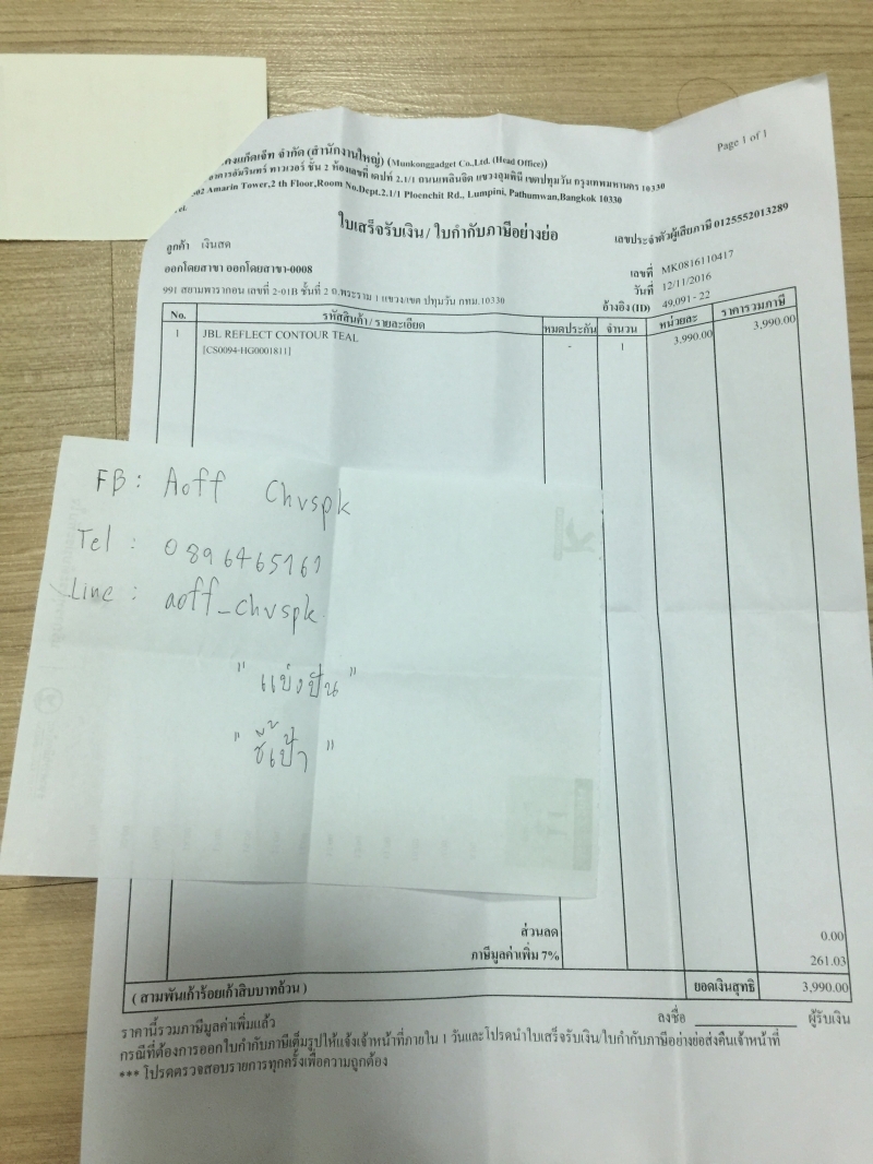 วันเดือนปีที่ซื้อ : 12/11/2016