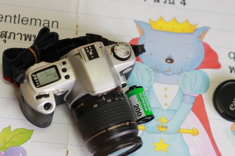 "ขายกล้องฟิล์ม canon EOS kiss พร้อมเลนส์ ef 28-80"