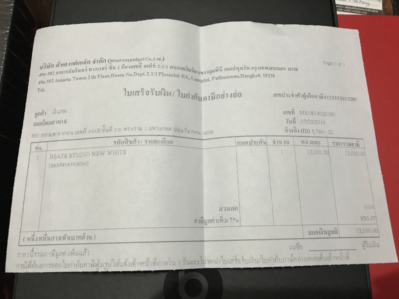 ซื้อจากร้าน Munkonggadget paragon มีใบเสร็จ แท้ชัวร์