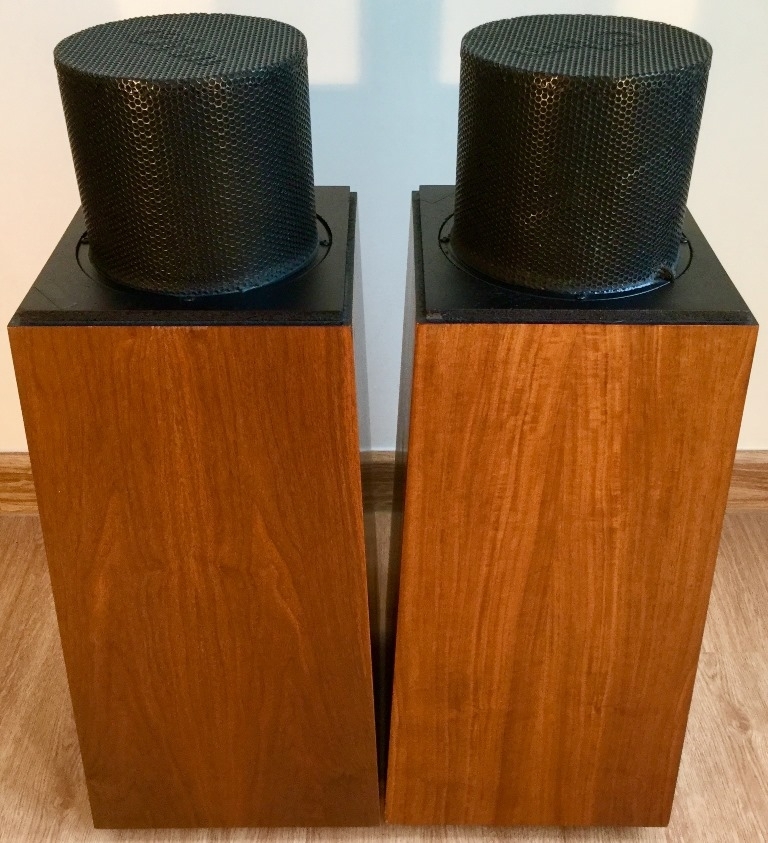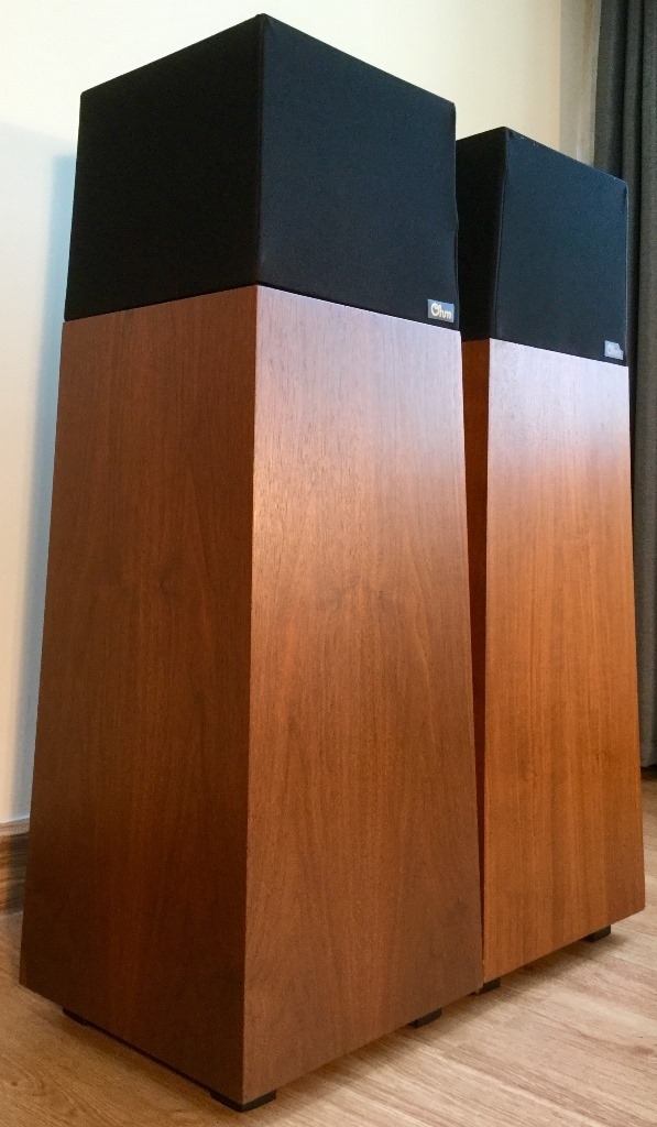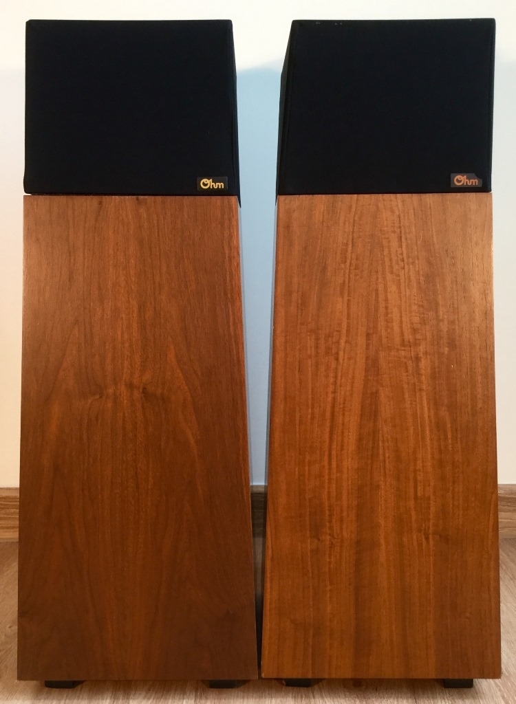 Ohm รุ่น Walsh 2 ลำโพงวินเทจยุค 80 จาก USA ตู้สวยแปลกตา มาพร้อมการออกแบบให้ดอกลำโพงหันขึ้นด้านบน เสียงอิ่มไพเราะไม่มีใครเหมือน นักเล่นรุ่นใหญ่ยุคก่อน คงเคยได้ยินชื่อเสียงของลำโพง Ohm มาบ้าง ในปัจจุบันต้องบอกว่าหายากมาก สภาพสวยท่านๆก็เก็บไว้ฟังกันเป็นส่วนใหญ่ เสียงโอ่โถงสเกลใหญ่อวบอิ่มเต็มห้อง เสียงร้องมีมวลเข้มหนา ฉ่ำหวาน นุ่มนวลและลื่นไหลชวนฟังมากๆ ปลายแหลมพริ้ว สะอาด กรุ้งกริ้งล่องลอย มีเบสที่ยิ่งใหญ่ โปร่งสะอาด นุ่มและลึกมีสีสัน เติมเต็มบรรยากาศในห้องให้รู้สึกอิ่มเอม อิ่มอกอิ่มใจ ฟังสบายผ่อนคราย เพลิดเพลินอย่างเป็นที่สุด