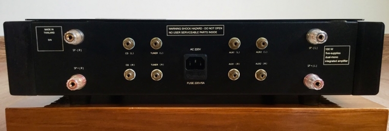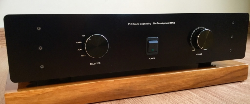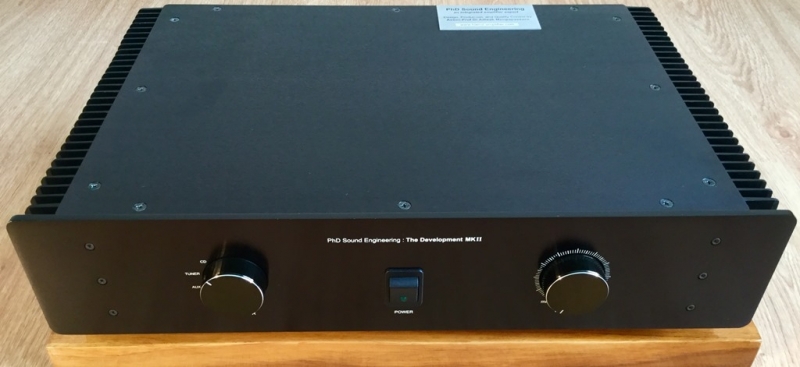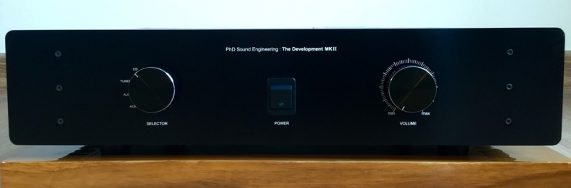 Integrated Amp. สัญชาติไทยแบรนด์ PhD Sound Engineering รุ่น The Development MKII โดย รศ.ดร.อดิศักดิ์ มนต์ประภัสสร หน้าตาดูดีแบบเรียบง่าย กำลังขับข้างละ 100 วัตต์ ที่ 8 โอห์ม ใช้ขั้วต่อสายลำโพงและสาญสัญญาณ เกรดคุณภาพระดับไฮ-เอนด์ ให้น้ำเสียงเป็น Audiophile มากๆ เป็นกลาง ชัดเจน จริงจัง มีมิติที่กว้างและลึก ให้ขนาดเวทีที่โอ่โถงดีทีเดียว พื้นหลังเงียบสงัดดีมาก ชิ้นดนตรีโดดเด่น หลุดลอย โฟกัสนิ่ง ความเป็นดนตรีสูง มีความสมจริงในน้ำเสียงของเครื่องเล่นแต่ละชนิด รวมทั้งให้ขนาดสเกลที่แม่นยำ ปลายแหลมสะอาด สดใสจัดจ้าน ให้รายละเอียดเสียงดีมาก มีความจริงจังในการถ่ายทอดน้ำเสียงต่างๆออกมาให้ชัดเจนสมจริงที่สุด เสียงร้องมีการถ่ายทอดรายละเอียดและอารมย์ได้ชัดเจนลึกซึ้ง โดดเด่นอยู่กลางเวที โอบล้อมด้วยวงดนตรี มีระนาบและการแบ่งช่องไฟได้ดี