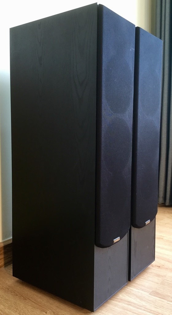 Design : 3-driver, 2-way bass reflex. Quasi- 3rd order resistive port, floorstanding / tower