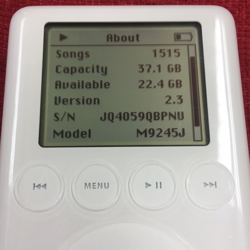 "เครื่อง Vintage Apple iPod classic 3rd Generation white 40 GB สวยใสแวววาว สภาพสวยใสทุกปุ่มใช้งานได้ 100 % ผลการสแกน Harddisk เขียวหมดจด No Bad แบตเตอรี่ดี เปลี่ยนให้ก้อนใหม่"