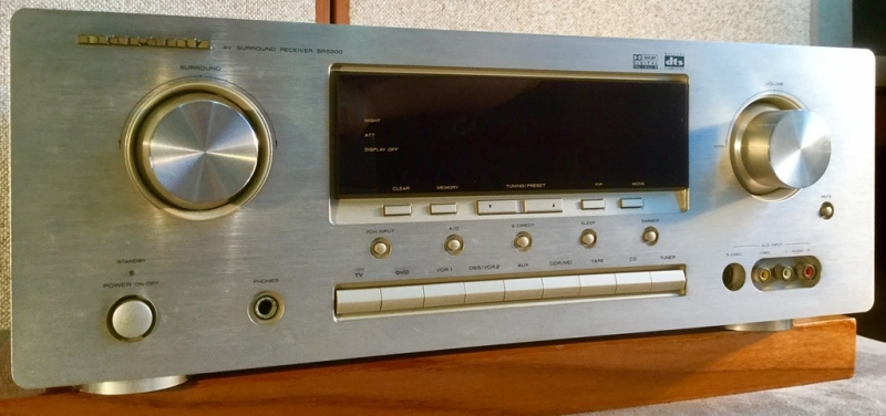 Marantz รุ่น SR-5200 เป็น AVR สำหรับดูหนังฟังเพลง 6.1 Channel มี Pre out ทั้งระบบ เครื่องสีทองสวยหรู รุ่นใหญ่ในอดีต เสียงดีน่าใช้ครับ เสียงเปิดโปร่ง ปลายแหลมสดใส เสียงกลางนุ่มนวลลื่นไหลเป็นธรรมชาติ มีเนื้อหนังกำลังดี ไม่อวบอ้วนหรือแห้งบางเกินไป สมจริงและเป็นกลาง โทนัลบาลานซ์ดี มีน้ำหนักเสียงและ Dynamic ที่ใช้ได้ ทำให้สร้างบรรยากาศในการชมภาพยนตร์ได้ดีเกินคาด เสียงนิ่งและเป็นธรรมชาติดีมาก ใช้ฟังเพลงเสียงลื่นหูดีทีเดียว ยังพอมีมิติและเวทีเสียงให้สัมผัสได้บ้าง เป็น AVR ที่มีคุณภาพ ทำได้ดีทั้งดูหนังและฟังเพลง คุ้มค่าน่าใช้งานครับ