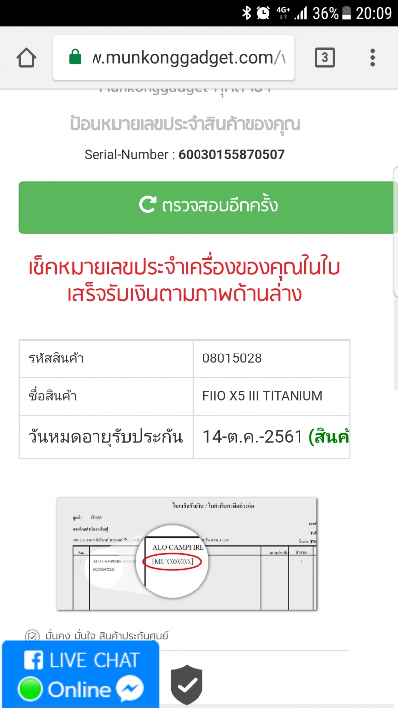 ใบเสร็จไม่มี มีแต่ สริปเงินที่รูด ประกันในเวปเหลือ 11 เดือน