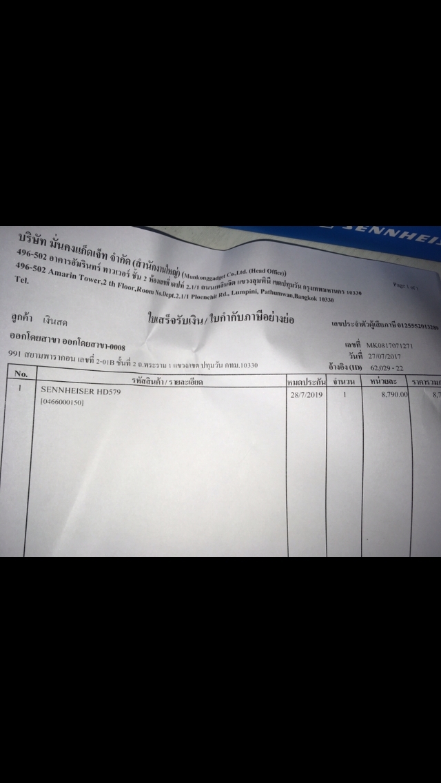 "ขาย Sennheiser HD579 ประกันถึง 07/19"