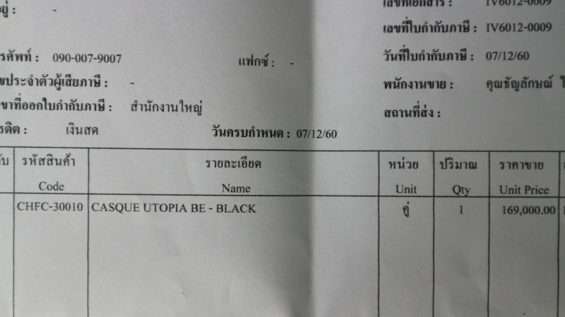 อุปกรณ์ : ครบกล่อง ใบเสร็จ