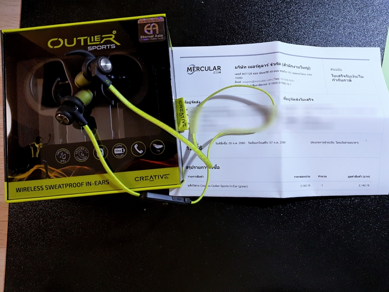 ซื้อมาจากร้าน Mercular เพราะว่าสนใจหูฟังออกกำลังเลยซื้อมาลอง หูฟังมีปริมาณเบสที่แน่นครับ ส่วนตัวผมติดแหลมมากกว่าเลยตัดสินใจขายครับ