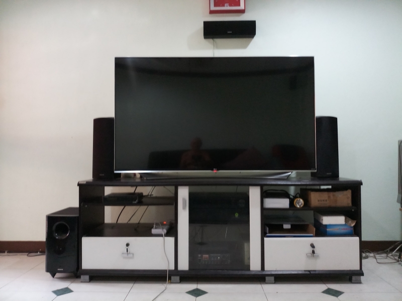 มี LG Super UHD 65UF950T + Onkyo HT-S7705 5.1 Ch.( Atmos 7.1 ) (อยู่ในประกัน 3 ปี) + Hi Media Q10 Pro + ชุดคาราโอเกะพร้อมไมค์ลอย 2 ตัว + ตู้ชั้นวางทีวียาว 180 ซม.