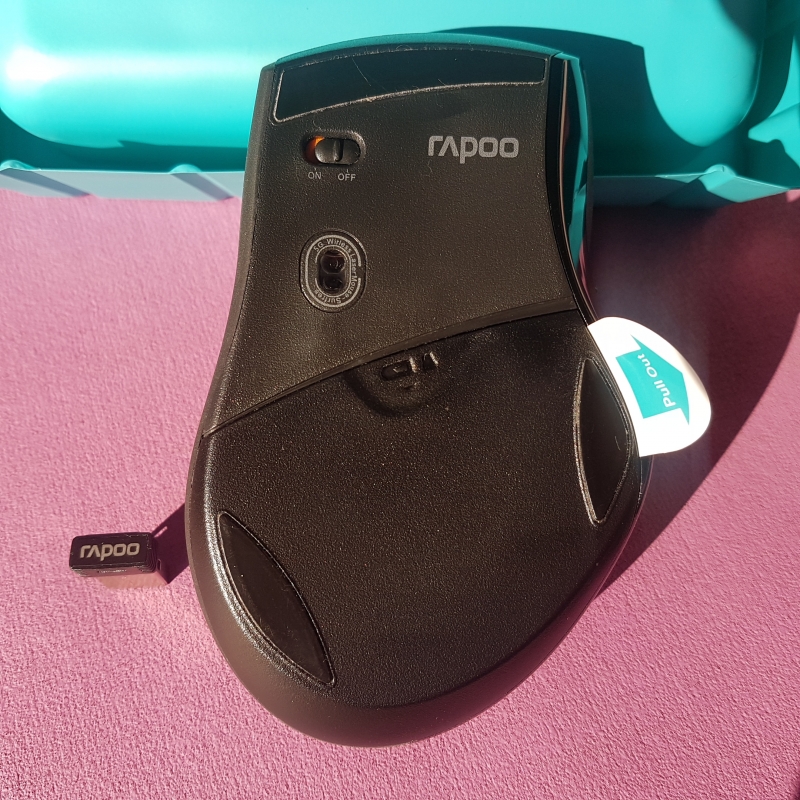 อีกทั้งทาง Rapoo ยังได้ใส่ปุ่มปรับความไวของเมาส์ (DPI) ไว้บริเวณตรงกลางเมาส์ โดยผู้ใช้สามารถกดเพื่อเปลี่ยนความเร็วของพอยเตอร์ในระหว่างใช้งานได้ 2 ระดับ