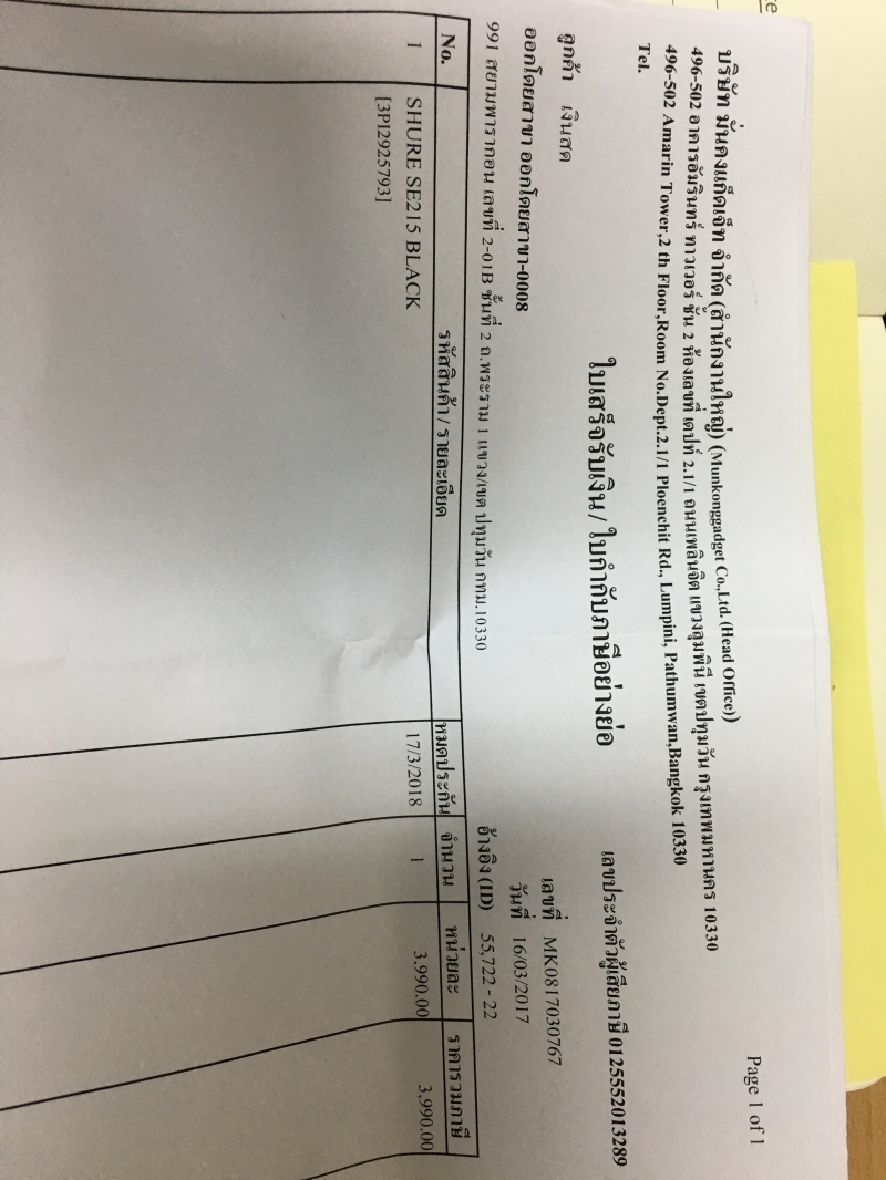 ขาย Shure SE215 สีดำ ประกันศูนย์ถึง 17/3/2018 ซื้อร้านเฮีย พร้อมสาย FiiO