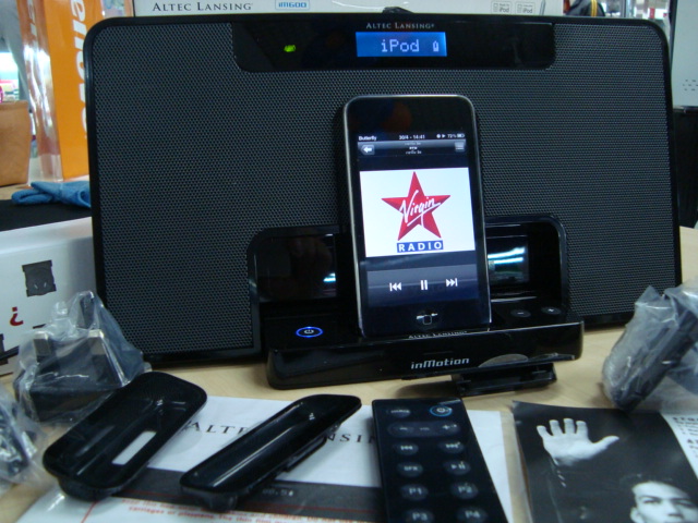 รายละเอียด: Altec Lansing เป็นอีกยี่ห้อลำโพงที่อยู่ในความต้องการของนักฟังเพลงหลายคน iM600 มาในภาพลักษณ์ที่สวยหรู น่าจับจองเป็นเจ้าของอยู่ไม่น้อย ด้วยรูปโฉมลำโพงที่แบนบางเข้ากันได้ดีกับความบางของเครื่อง iPod ผิวหน้าลำโพงราบเรียบและปิดคลุมไว้ด้วยแผ่นตะแกรงโลหะดูดีมากๆ ชุดแท่นเสียบ iPod และผิวหลังตัวลำโพงโชว์ผิวสีดำเข้มเงาวาว ให้ความรู้สึกสัมผัสที่เรียบรื่น