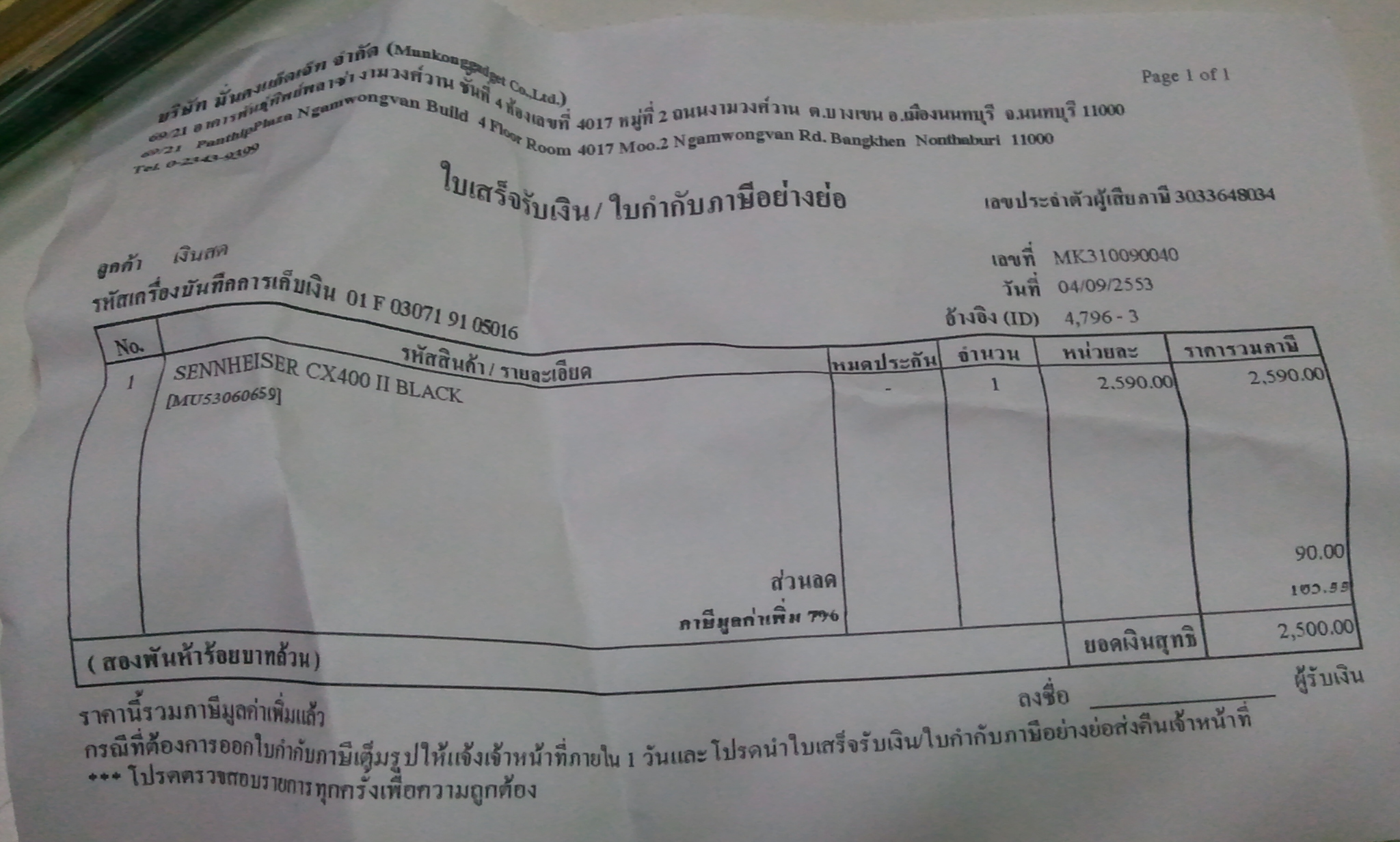 ขาย หูฟัง Sennheiser CX400-II(ประกันร้านมั่นคง ซื้อเมื่อวันที่ 04/09/53)