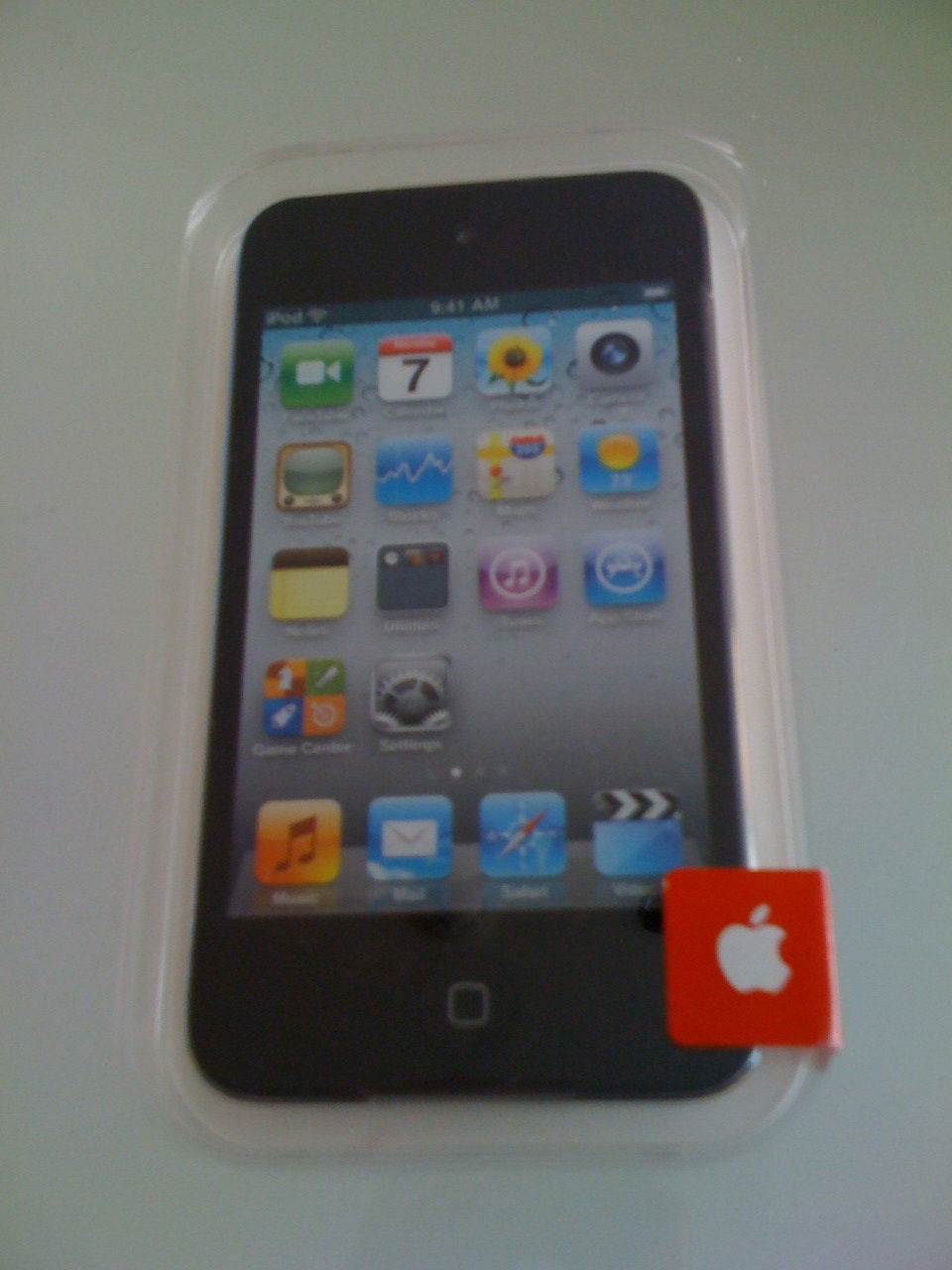 สังเกตว่าจะมีสติกเกอร์ Apple สีแดงติดอยู่ข้างกล่อง ผมยังไม่ได้แกะกล่องเลยครับ