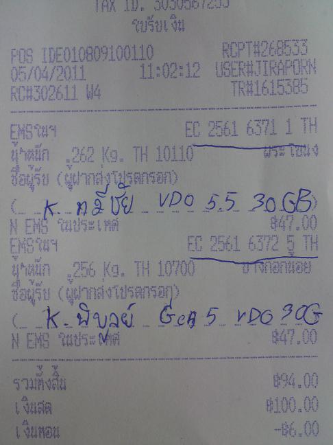 ได้รับแล้วนะครับคุณบี ipod vdo5.5 รวดเร็วทันใจ