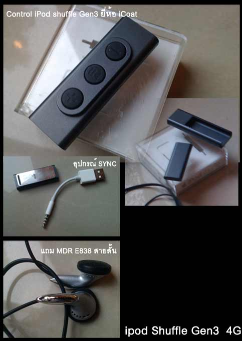 รายการที่สอง เครื่องเล่น iPOD SHUFFLE GEN3 ขนาด 4G พร้อมอุปกรณ์สำหรับเชื่อมต่อหูฟัง icoat และเป็น CASE ( ราคาขายปกติ 400-450 บาท) ในตัว