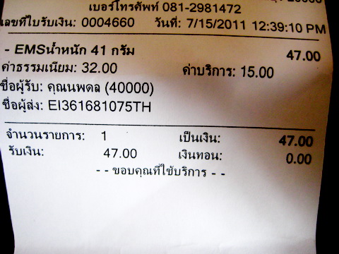 (ปล.ไปษณีย์หยุด 4 วัน เริ่มส่งของวันอังคารนะครับ)