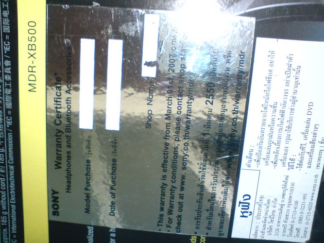 ขอโทษนะครับ อยากรู้ว่าตรงกล่อง XB500 ทำไมใบรับประกันถึงไม่มีเขียนรายละเอียดอะไรเลย