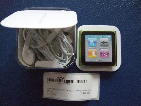 ขาย Ipod nano Gen6 8GB สีเขียวอ่อน อุปกรณ์ครบยกกล่อง มีสติ๊กเกอร์บาร์โค้ดและราคาให้ด้วยครับ สภาพเหมือนมือ1 ไม่มีริ้วรอยใดๆทั้งสิ้น หูฟังและสายsyncยังไม่เคยผ่านการใช้งานครับ เหมือนกับซื้อของมือ1เลยครับ มีประกันเหลือถึงเดือนกรกฎาคม ปี2012 เหลืออีกยาวๆเลยครับ ตั้งแต่ซื้อมาลงเพลงไปครั้งเดียว ฟังไปไม่ถึง15นาทีเพื่อลองทดสอบเครื่อง หลังจากนั้นก็ปล่อยให้นอนอยู่ในกล่องครับ