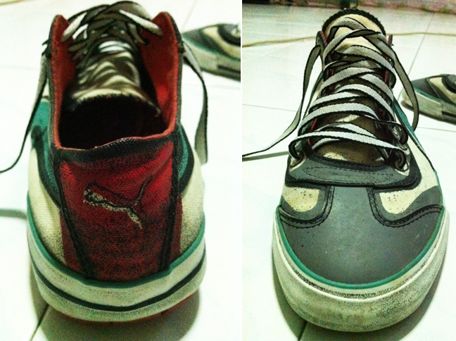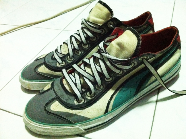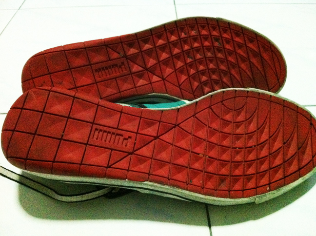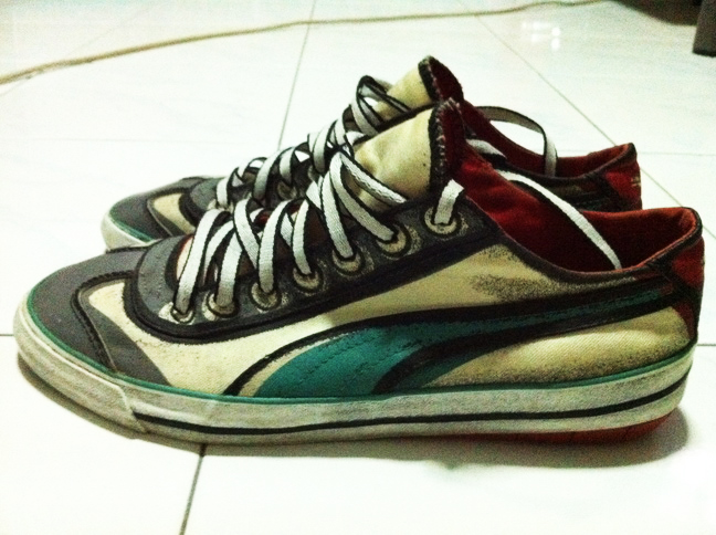 ปล่อยรองเท้า Puma รุ่น Factory II สีขาว-เขียว-แดง สภาพกริ๊บ ๆ เลยครับ ใส่นับครั้งได้ พื้นเต็ม ๆ ครับ