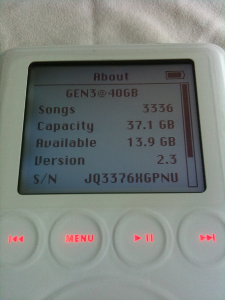 รายการที่ 1 iPod Gen3 40GB Serial ด้านหลังตรงกัน อ่านไทยได้ ติดกันรอยที่จอแล้ว ด้านหน้า + หลัง มีรอยขนแมวไม่มากไม่มีรอยลึก