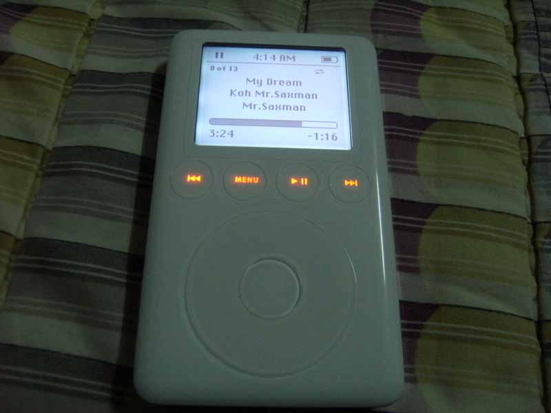 iPod G3 เดิม 10 gb เปลี่ยนเป็น CF Card 16 GB หมดปัญหาเรื่องฮาร์ดดิสแบด แถมน้ำหนักเบากว่าเดิมค่อนข้างเยอะครับ