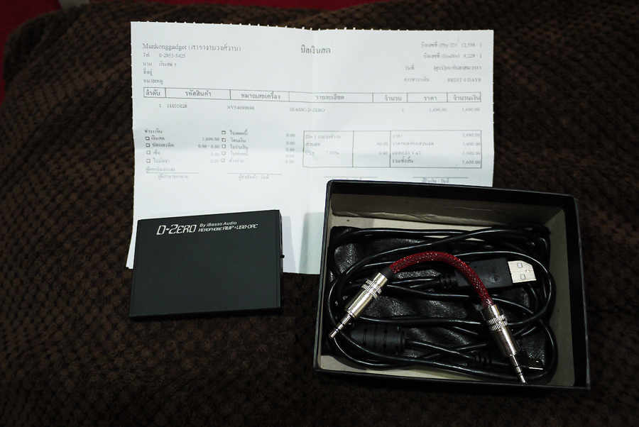 iBasso D-Zero ยกกล่อง แต่หาสาย Mini ที่แถมมาไม่เจอ เลยแถม Mini to Mini สายเงินไปแทนล่ะกัน ซื้อมาเมื่อ 09/09/2011 ใบเสร็จครบ