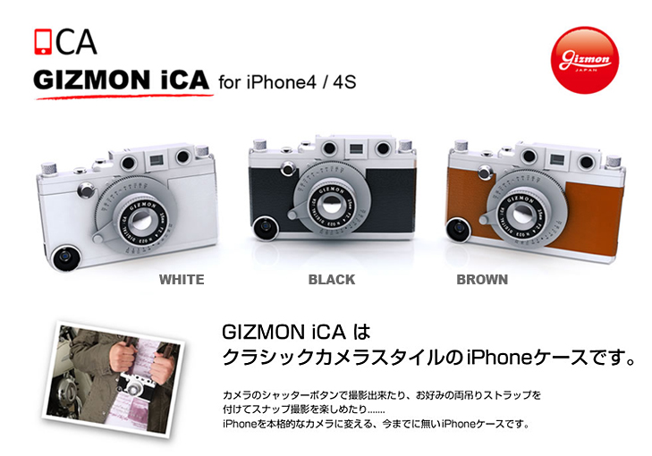 Gizmon iCA classic camera case for iPhone4/4S ผลิตจาก Polycarbonate ซึ่งเป็นวัสดุที่มีความแข็งแรง ทนทาน และด้วย ดีไซน์ที่แปลกตา เหมือนกับกล้อง ด้วยจุดเด่นที่มีน้ำหนักเบา สามารถกดปุ่มชัตเตอร์ได้เหมือนจริงจากด้านข้าง