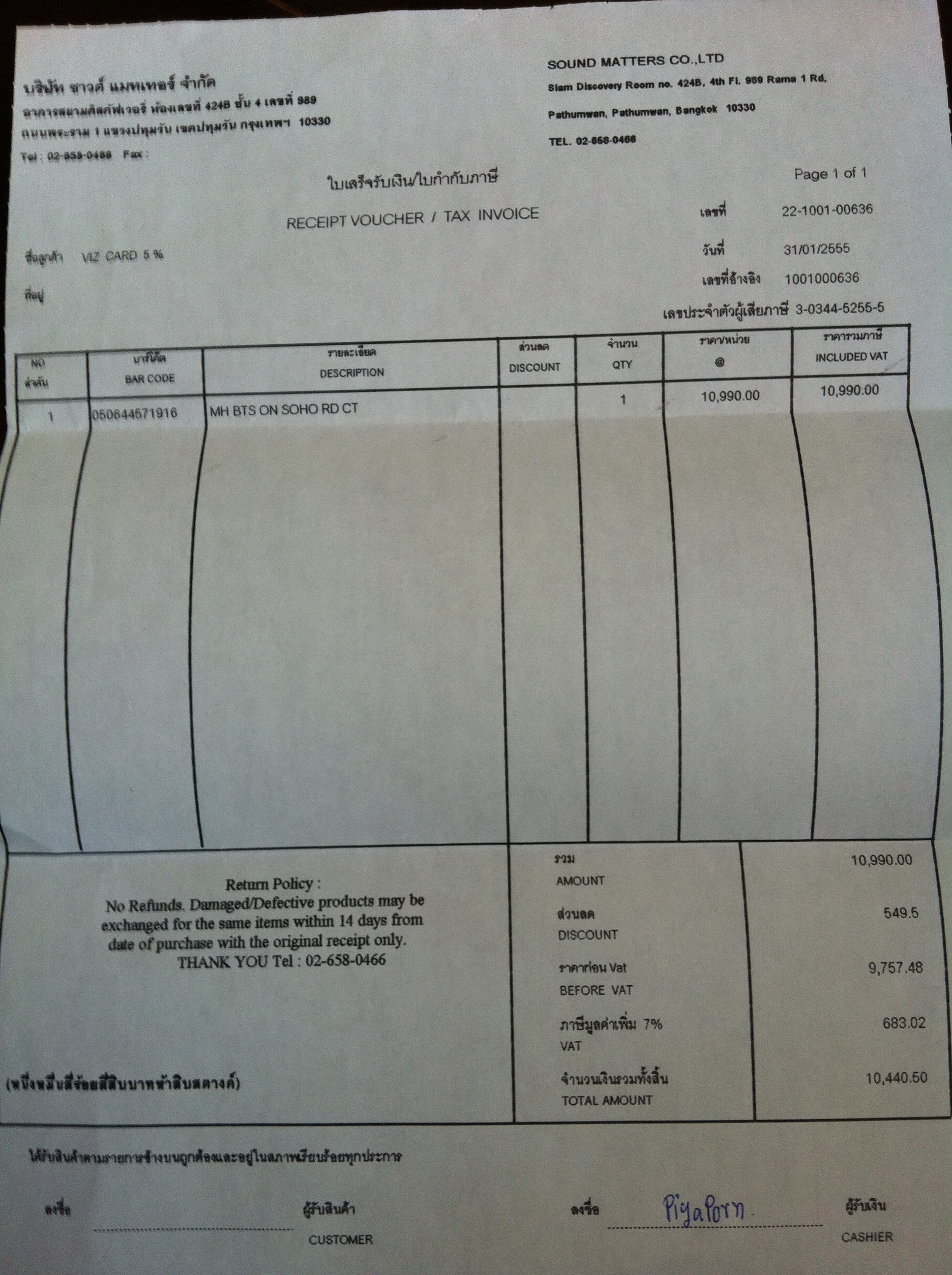 วันที่ซื้อมา : วันที่ 31 มกราคม 2555 ณ ร้าน sound matter ที่ สยามดิส