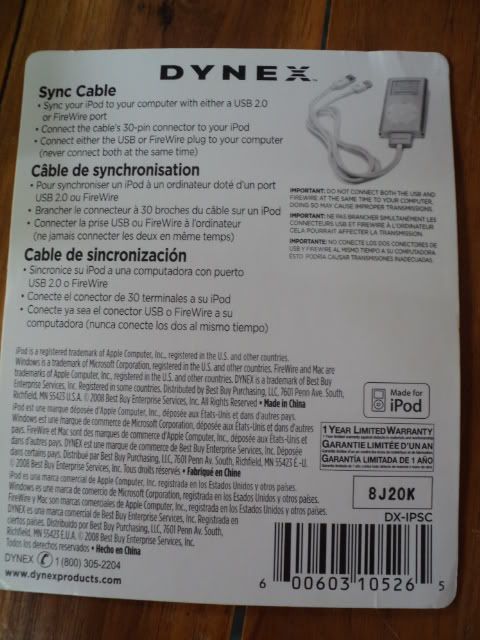 1.สาย Syn.&FireWire ยี่ห้อ Dynex(ใช้สำหรับ iPod Gen3)
