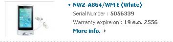 ขาย Sony Walkman A864 สีขาว ซื้อมาจาก Sony Store พระราม9 เมื่อ 19 เมษา ครับ