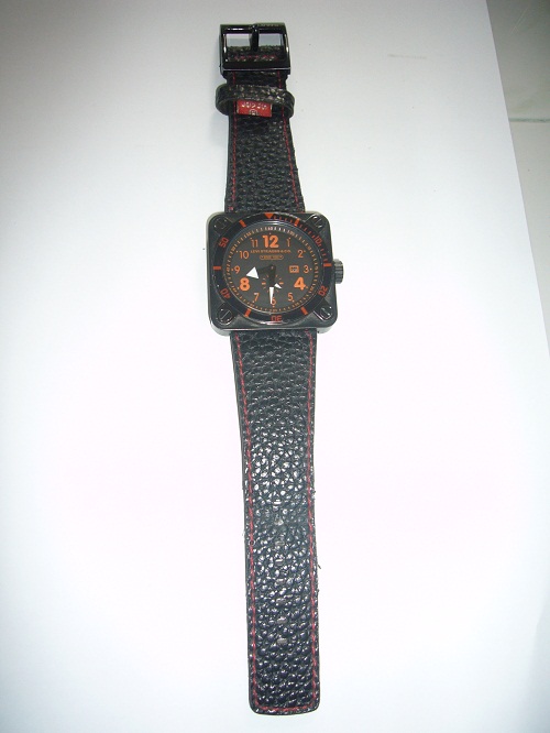 สายหนังดำเย็บด้วยด้ายแดง สภาพสวย เป็นระบบ QUARTZ ของผู้ชาย