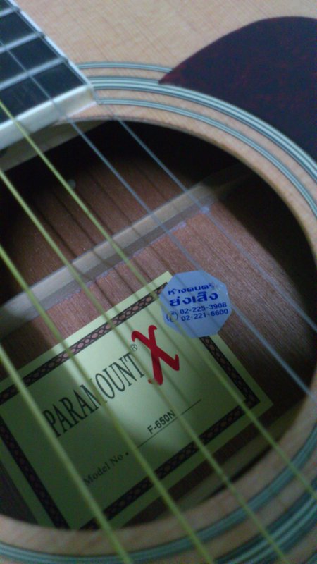 ซื้อมาจากร้านย่งเส็งครับ มีสติ้กเกอร์ติดอยู่ที่ตัวกีต้าร์ ปรับแต่งเรียบร้อยเล่นไม่เจ็บมือแน่นอน