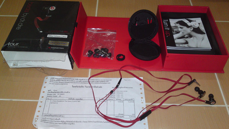 ขออนุญาติขายค่ะ Monster Beats Tour สภาพดี อุปกรณ์ครบชุด ใช้งานปกติ 100% ประกันเหลือ อายุประมาณเกือบ 4 เดือน ใบเสร็จ COM7 สาขา เซียร์รังสิต 23/4/2555