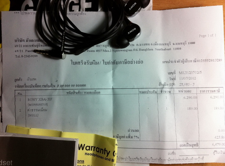 ขออนุญาต เฮียขายหูฟัง Sony XBA-3IP รุ่นมีไมค์ ครับ ขายราคา 3700บาทครับ ซื้อมาจากร้านมั่นคงครับมีใบเสร็จพร้อม สภาพดีอุปกรณ์ครบ กล่องก็มีให้หมดพร้อมถุงพลาสติกจากร้านมั่นคงด้วย ไม่ค่อยได้ใช้ ซื้อมาประมาณ3เดือนได้ ทีแรกจะเอามาใช้กับ iphone แต่ก็ไม่ได้ใช้ฟังฟังแต่ ipod เดี๋ยวรูปตอนกลางคืนจะมาโพสให้ดูน่ะครับ ขอกลับไปเอากล่องและอุปกรณ์ มาถ่ายพร้อมกันก่อน