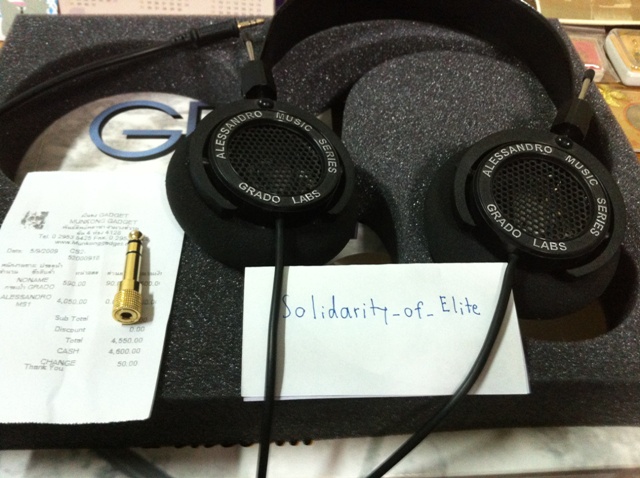 รายการที่ 1 เป็นหูฟัง Alessandro MS1 ซื้อมาวันที่ 5 กันยายน 2552 อุปกรณ์ครบกล่องครับ สภาพดีใช้งานไม่มากครับ ฟองน้ำไม่เปื่อย สีตัวอักษรที่หูฟังไม่ลอกครับ เคยเปลี่ยนสายหูฟังของ Grado (สายเดียวกับตัวเดิม) เมื่อปลายปีที่แล้ว เนื่องจากเก็บไว้ในกระเป๋าหูฟังนานมากเลยทำให้สายพันกันแล้วไม่คลายตัว ตอนนี้มีตำหนิมีที่ตรงสายหูฟังที่พันกันหนึ่งที่ แต่เวลาใส่ก็ไม่มีผลอะไรกับเสียงครับ ขอปล่อยที่ 2,200 บาท ครับ